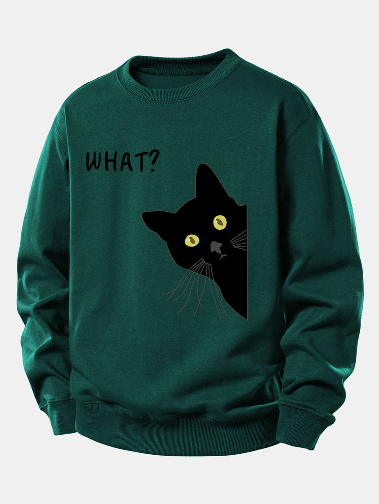 Was Schwarze Katze Druck Locker Sitzendes Sweatshirt
