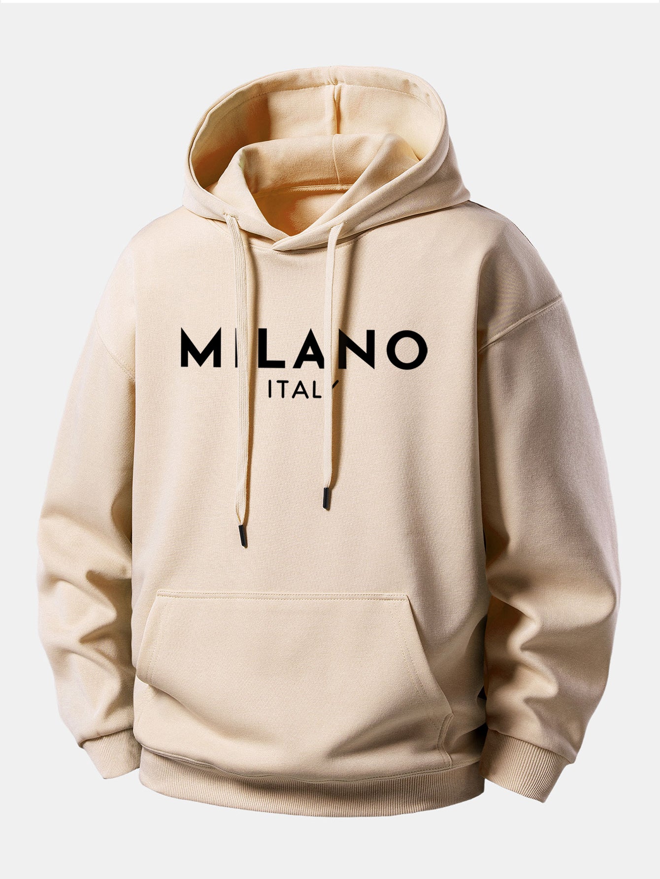 Featuring a clean and modern ''Milano'' graphic on the chest, this hoodie blends simplicity with a touch of European street style. Crafted from soft, breathable fabric, it delivers all-day comfort whether you’re lounging, layering, or heading out.